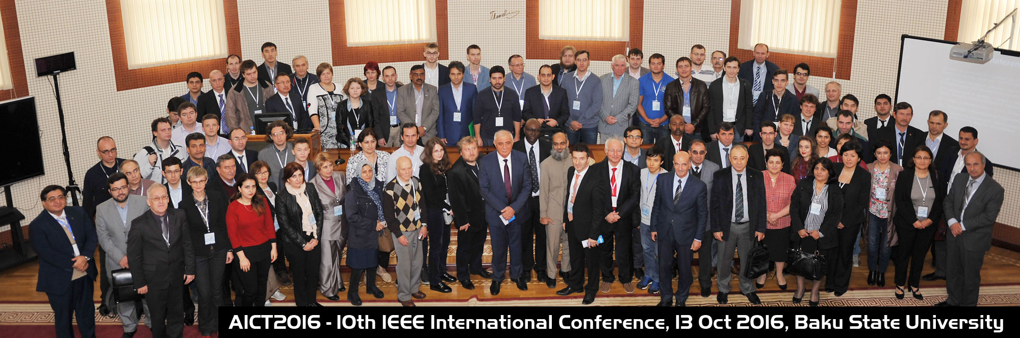 AICT2016 is co-organized by Ministry of Communication and High Technologies of Azerbaijan, Ministry of Education of Azerbaijan, Qafqaz University, Baku Higher Oil School, Baku State University, Lomonosov Moscow State University Baku branch, Azerbaijan Technical University, University Malaysia Sabah, ECO Science Foundation (ECOSF), Institute of Information Technology and Institute of Control Systems of ANAS, UNESCO Institute for Information Technologies in Education, with support of IEEE Azerbaijan Joint Chapter and technically sponsored by Institute of Electrical and Electronics Engineers (IEEE). AICT2016 will offer oral, poster sessions, keynote speeches, tutorials and, professional meetings. Submitted papers are expected to cover state-of-the-art technologies, theoretical concepts, standards, products implementation, ongoing research projects as well as application issues of the ICT. In the previous AICT was joined by hundreds of participants from more than 50 countries including Australia, Azerbaijan, China, Finland, Georgia, Germany, India, Iran, Italy, Japan, Kazakhstan, Korea, Latvia, Malaysia, Pakistan, Philippines, Portugal, Romania, Russia, Slovakia, Spain, Sweden, Thailand, Turkey, Ukraine, United Kingdom, United States, Uzbekistan, etc.